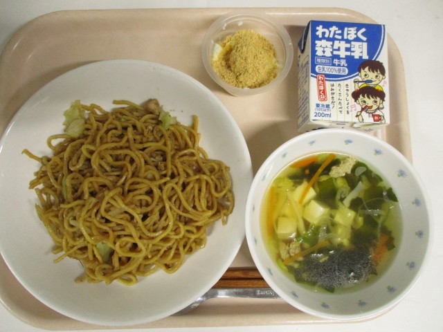 10月17日 ひるぜん焼きそば・豆腐とわかめのスープ・ミルクくずもち・牛乳