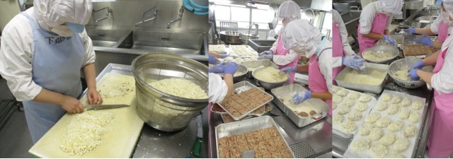 しめじ、椎茸、えのきたけを荒みじん切りにしてメンチカツにしました。きのこのうま味と肉のうま味が合わさり、ジューシーなメンチカツでした。きのこ類が苦手という子が多いのですが、これなら食べられたという子もいました。