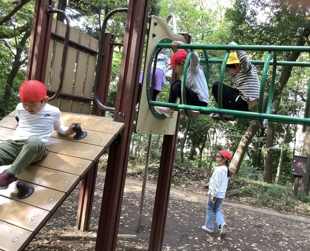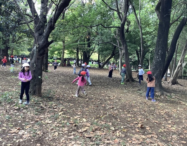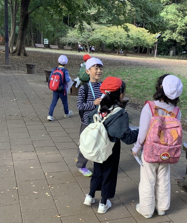 1年生は、林試の森公園に遠足に行ってきました。午前中のシールラリーでは、時間までに全部の班がゴールに到着しました。シールが全部集められなくても時間を守ってゴールに来られて、えらかったです。お弁当の後は、広場や遊具で楽しく遊びました。