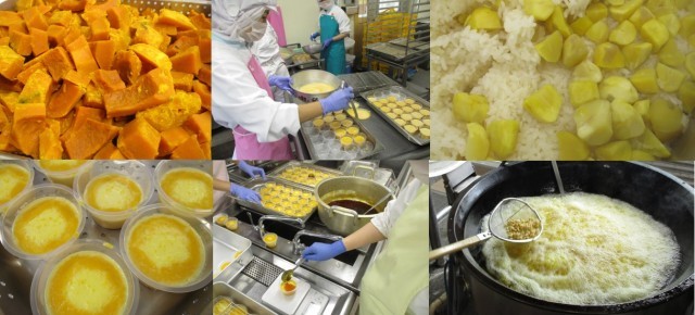 11月2日(日)は十三夜です。十五夜と同じくお月見をする日で「栗名月」「豆名月」とも言われます。給食では栗ご飯や大豆を揚げた五目豆を作りました。かぼちゃプリンは、月とハロウィン、2つの意味を込めて作りました。調理師さんが生地をこして、かぼちゃの味がしっかりしたなめらかな食感に蒸しあげてくれました。プリンが苦手という子も意外と多いのですが、全体的には残りはほとんどありませんでした。