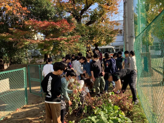 小春日和の一日でした。中休みに青空の下で元気に遊ぶ子どもたちです。のびのびタイムには、4年生がさつまいもの収穫をしていました。総合の時間のDASH油面村の活動の一つです。