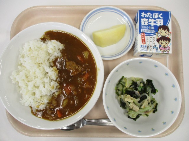 11月26日 カレーライス・海藻サラダ・果物(りんご)・牛乳