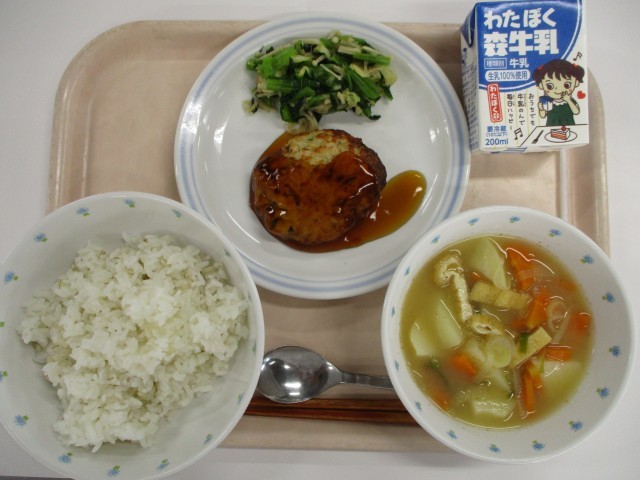 12月5日 ご飯・鶏れんこんつくね・小松菜とえのきのおひたし・みそ汁・牛乳