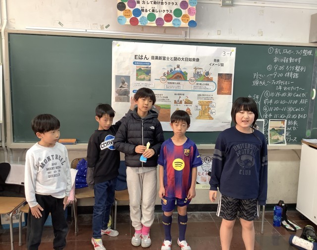 3年生は、「わたしたちのまち目黒区」のグループ発表です。