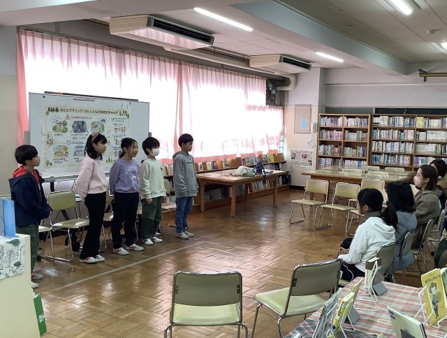 社会科などで学習してきた目黒区や油面の魅力、歴史などについて、身振り手振りを入れながら発表しました。