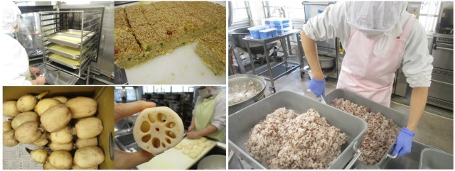小正月の朝には小豆がゆを食べる風習があります。給食では赤米ごはんで魔除けの赤を表しました。松風焼きやれんこん料理が、おせちにも使われる縁起の良い料理です。お吸い物は、大きな卵豆腐を給食室で作り、小さく切って椀種に、吸い口(香り)にゆずを加えています。ほんの少しゆずの香りがするはずです、と話すと「本当だ!」としっかり味わっていました。