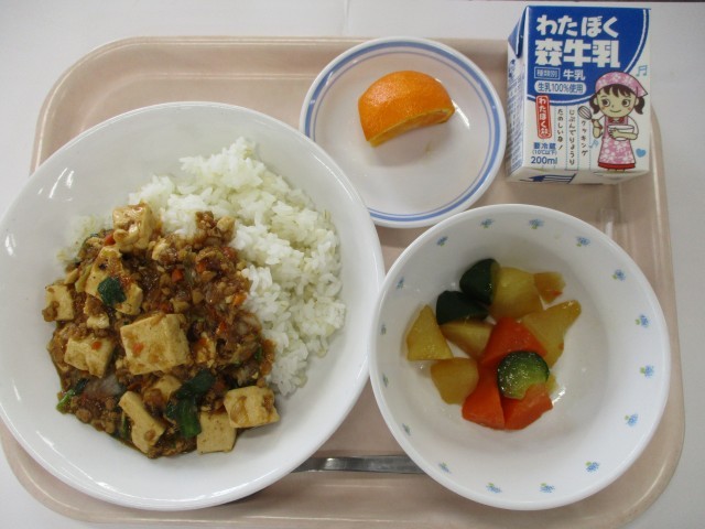 1月17日 麻婆豆腐丼・中華風野菜・果物(かんきつ)・牛乳