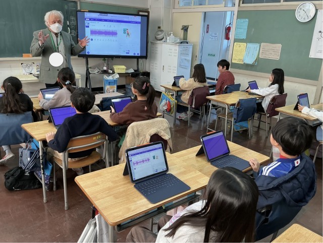3年生は、ICTの授業を受けていました。音量の調整などについて学んでいました。