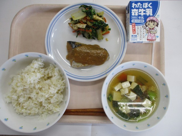 2月9日 玄米入りごはん・さばのみそ煮・野菜のごま和え・すまし汁・牛乳