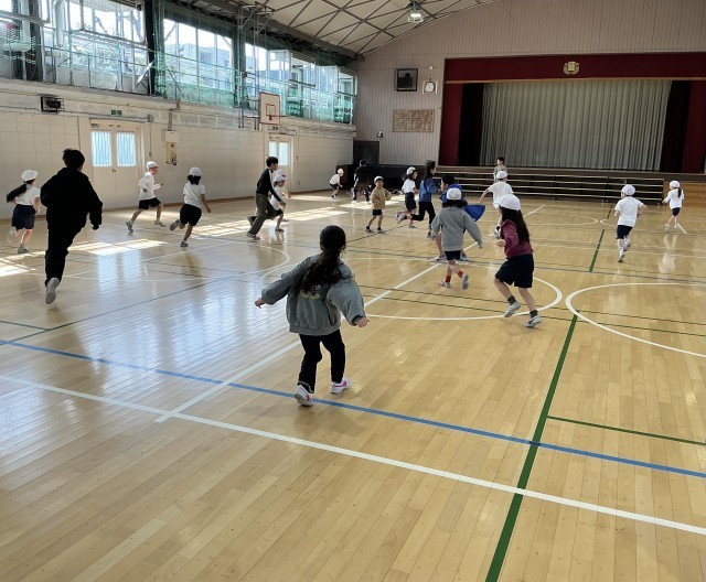 中休みに、体育委員会による「100秒鬼ごっこ」がありました。低学年の子どもたちがたくさん参加し、楽しい中休みになりました。