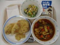 3月9日 ミルクパン・スズキのレモンバター焼き・菜の花とコーンのソテー・根菜のポタージュ・牛乳