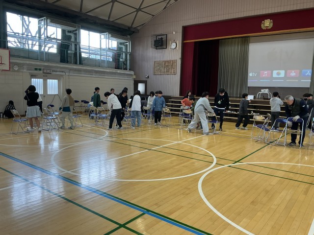 午後の「のびのびタイム」に、5年生が卒業式の会場設営を行いました。みんなで協力して、椅子を並べたり、マットや跳び箱を運び出したりしました。体育館が一気に卒業式の式場になりました。