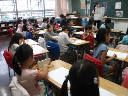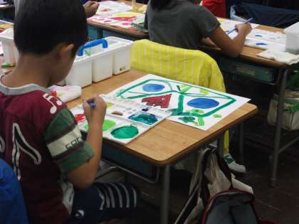クレパスで書いた後、絵の具を使って色を塗りました。