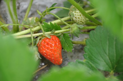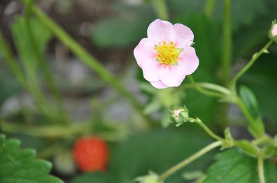 いちごの花が咲き、実がなっています。