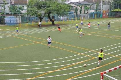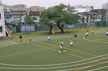 ゲーム形式の練習です。みんなで声をかけ合っています。