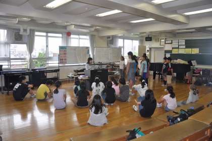 二つの教室に分かれて練習しています。