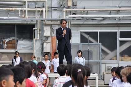 校長先生が、「春の交通安全週間期間中に、事故にあわない行動の仕方を身に付けましょう。」という話をしました。