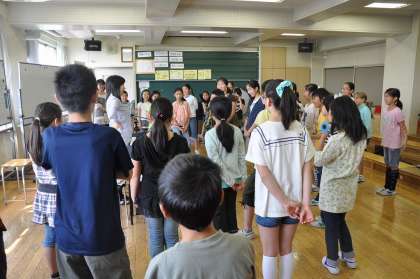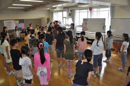 明るい日差しが音楽室に差し込んでいます。子どもたちは表情もにこやかに練習をしています。