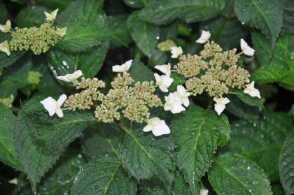 雨にぬれた紫陽花が、きれいな花を咲かせ始めています。