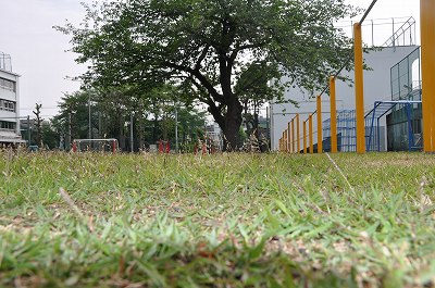 みんなの協力で養生してきた芝生が、青々としてきました。
