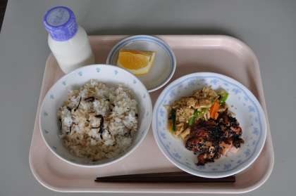 今日のデザートは日本のグレープフルーツと呼ばれる美生柑です。さわやかな香りと味が特徴です。調理員さんが食べやすく切りました。