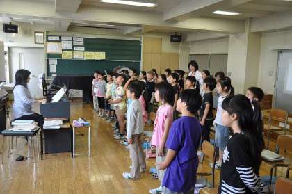 運動会の歌のあとは、見違えるようなきれいな声で春の小川を歌っています。