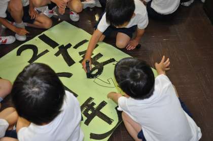 みんなで運動会の表示用プログラムを作っています。
