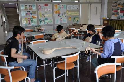 三線の音が、校舎内に響いています。