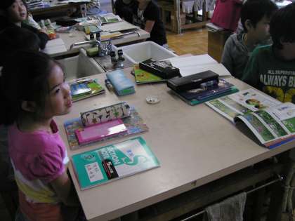 理科室で、種の観察をしました。