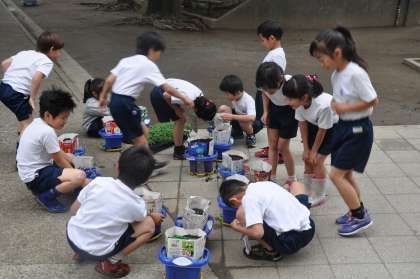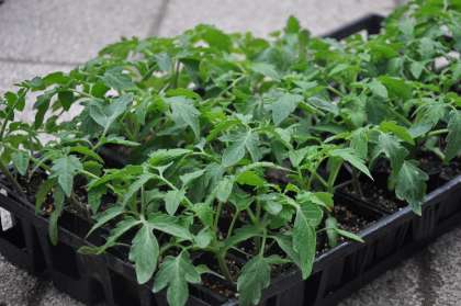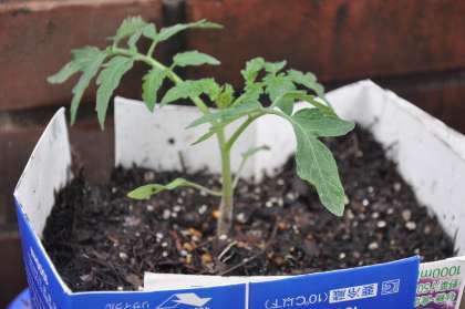 土のベッドができあがり、ミニトマトの苗を植えました。