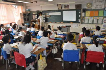 ひき算の50マス計算をやったあと、時刻と時間の確認をしています。