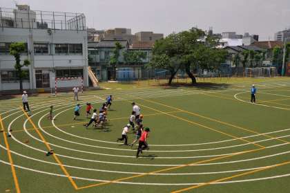校庭では、野球の練習が始まっています。