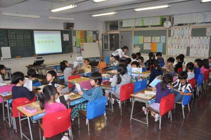 「いくつといくつ」の問題を、となりの子と確かめています。