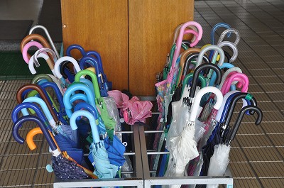 先週の雨の傘立てです。きちんとそろえて入れてあります。