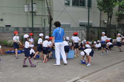 チューリップを育てたフラワーポットで、次はミニトマトを育てます。その準備をしています。