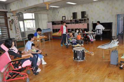 赤白に分かれて、運動会の応援歌の練習をしています。