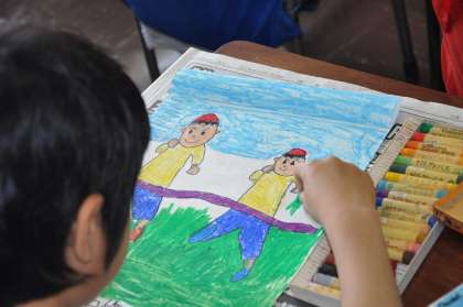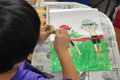 運動会の旗を作っています。