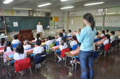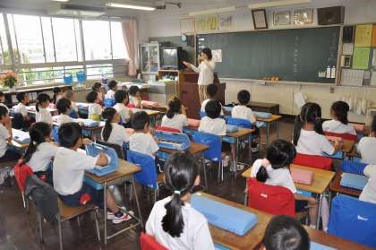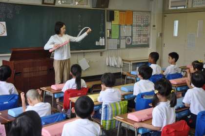 鍵盤ハーモニカの初期の指導に、専門家をお呼びして指導を受けました。子どもたちも少し緊張気味です。