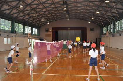 ソフトバレーボールのゲームをしています。