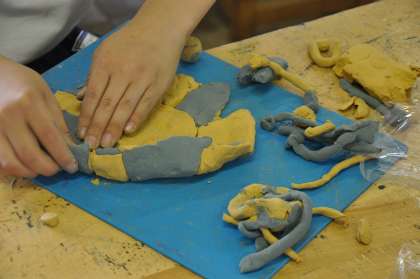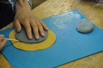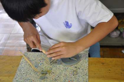 延ばした粘土の板から、自分独自の作品を作っています。