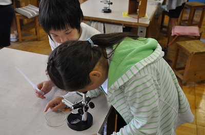 解剖顕微鏡の使い方を学習しています。