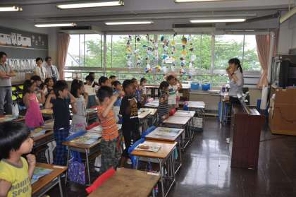 「さんぽ」の曲にあわせて、みんなで考えた動作をつけています。
