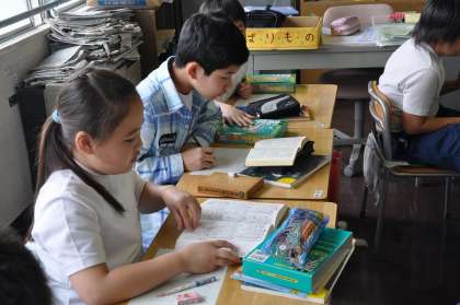 漢字がどのようにできているかを漢字辞典で調べながら確認しています。