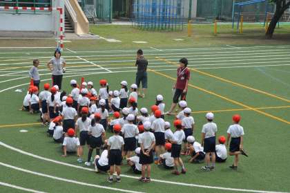 かけっこの練習中です。走る順番も確認しました。