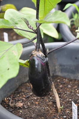 4年生が育てているなすに実が付いています。