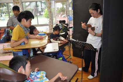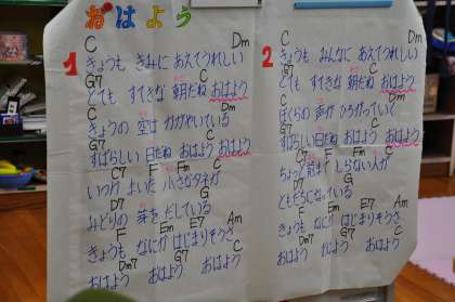 今日もみんなが元気に登校しました。朝の会で「おはよう」の歌を歌っています。