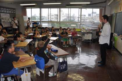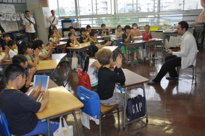 英語で自己紹介をしたり、歌を聞いたりしています。