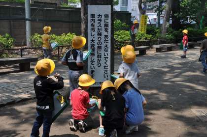 生活科で油面公園に行き、発見したことをメモに書いています。