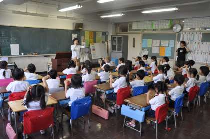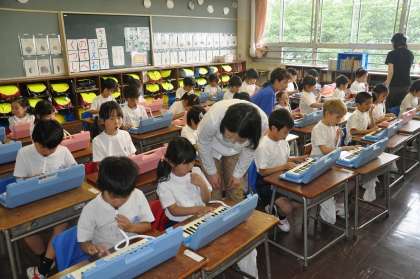 鍵盤ハーモニカの初期の指導に、専門家をお呼びして指導を受けました。子どもたちも少し緊張気味です。