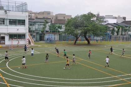 たくさんの子どもたちがランドセル広場で遊んでいます。